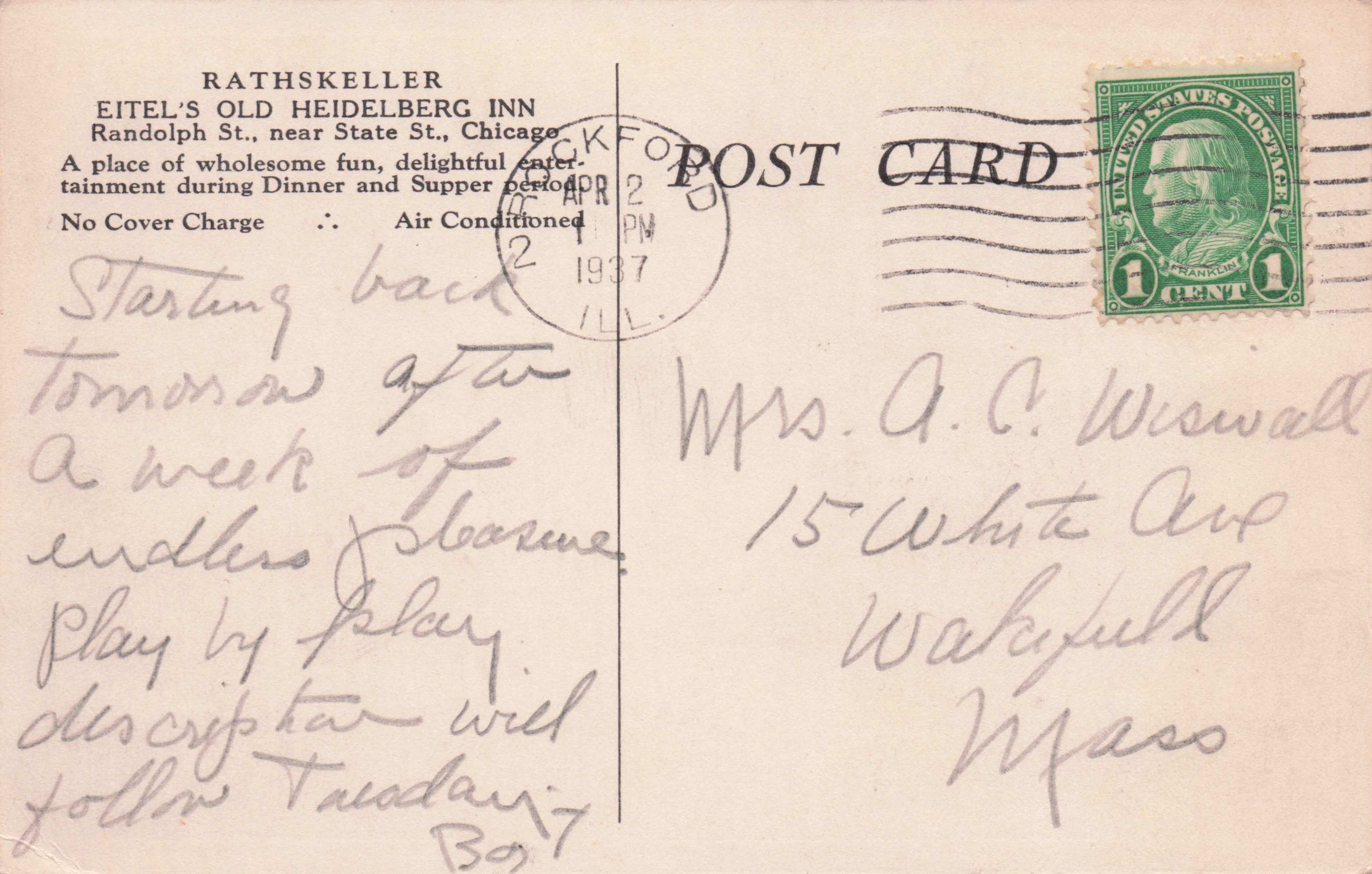 Rathskeller Eitel's Old Heidelberg Inn Chicago Autographs